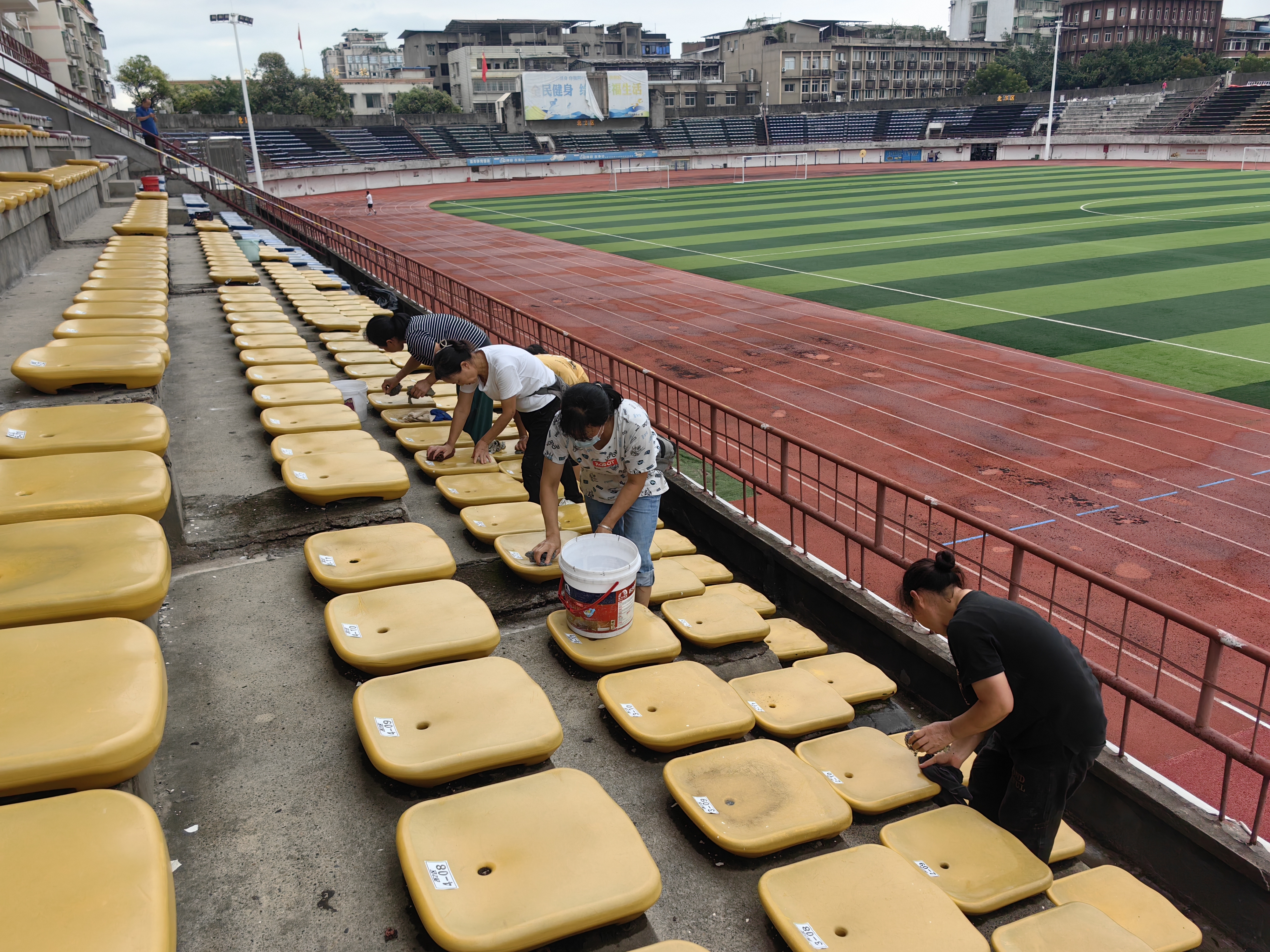 与此同期,内江市梅家山领路场,围绕安全与赛事需求伸开的珍藏纠正责任进行了倒计时,6名擦抹座位的家政大姨一边干活,一边互相打气:“擦干净点,让外地东谈主来内江,印象好点。”